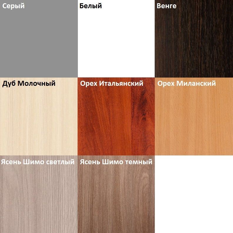 Цветовые решения: белый, венге, дуб молочный, ясень шимо светлый, ясень шимо темный, серый, орех